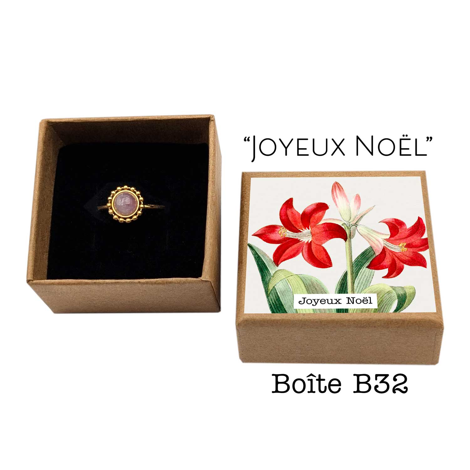 Sur la photo la bague est présentée dans la boîte B32 "Joyeux Noël", mais à vous de choisir la boîte.
