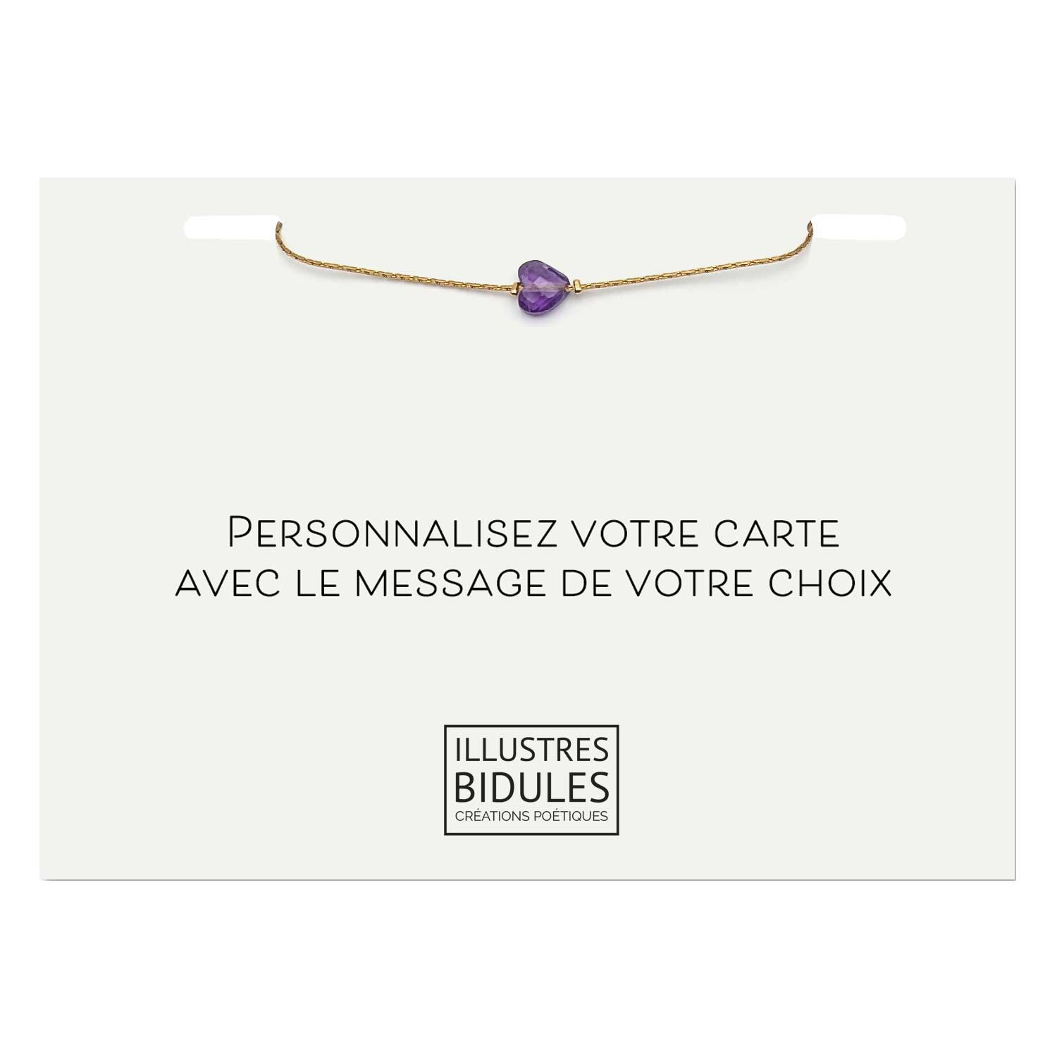 Bracelet Isadora coeur améthyste foncé - Carte personnalisable