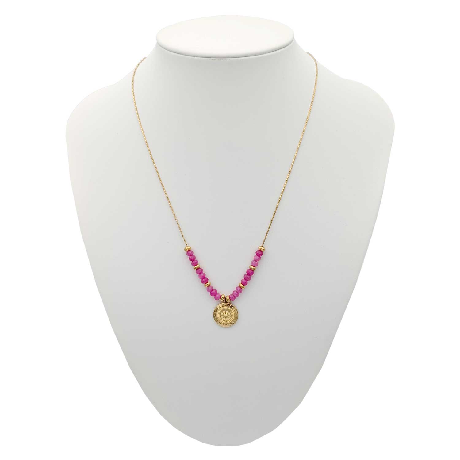 - Perles roses en jade teintée et pendentif en acier inoxydable