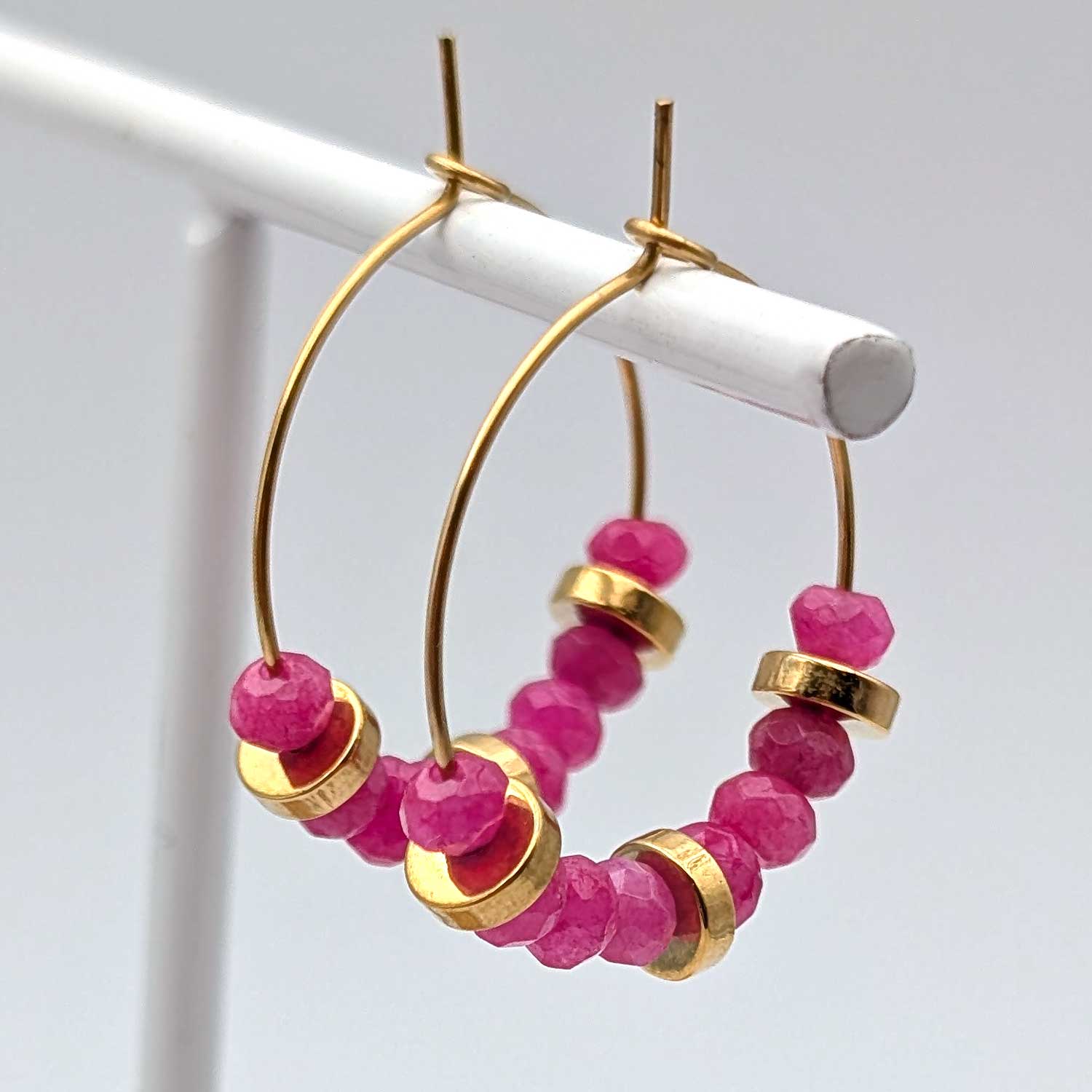 - perles à facettes en jade teintée et en acier inoxydable