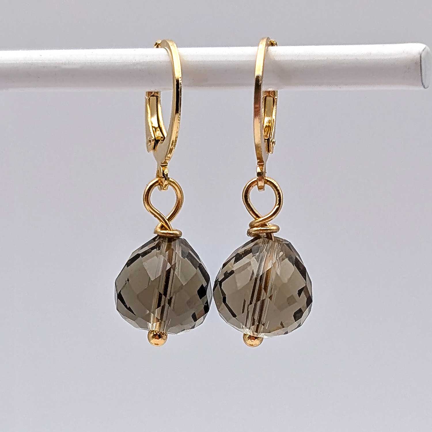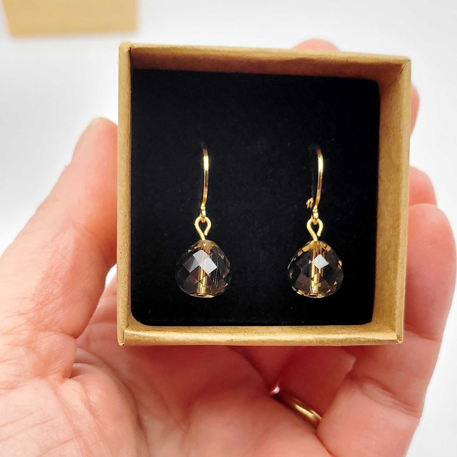 Boucles d'oreilles dormeuses en acier inoxydable doré avec perle à facette en verre de Bohême de couleur nougat, un joli brun. Elles font partie de la collection CANDY