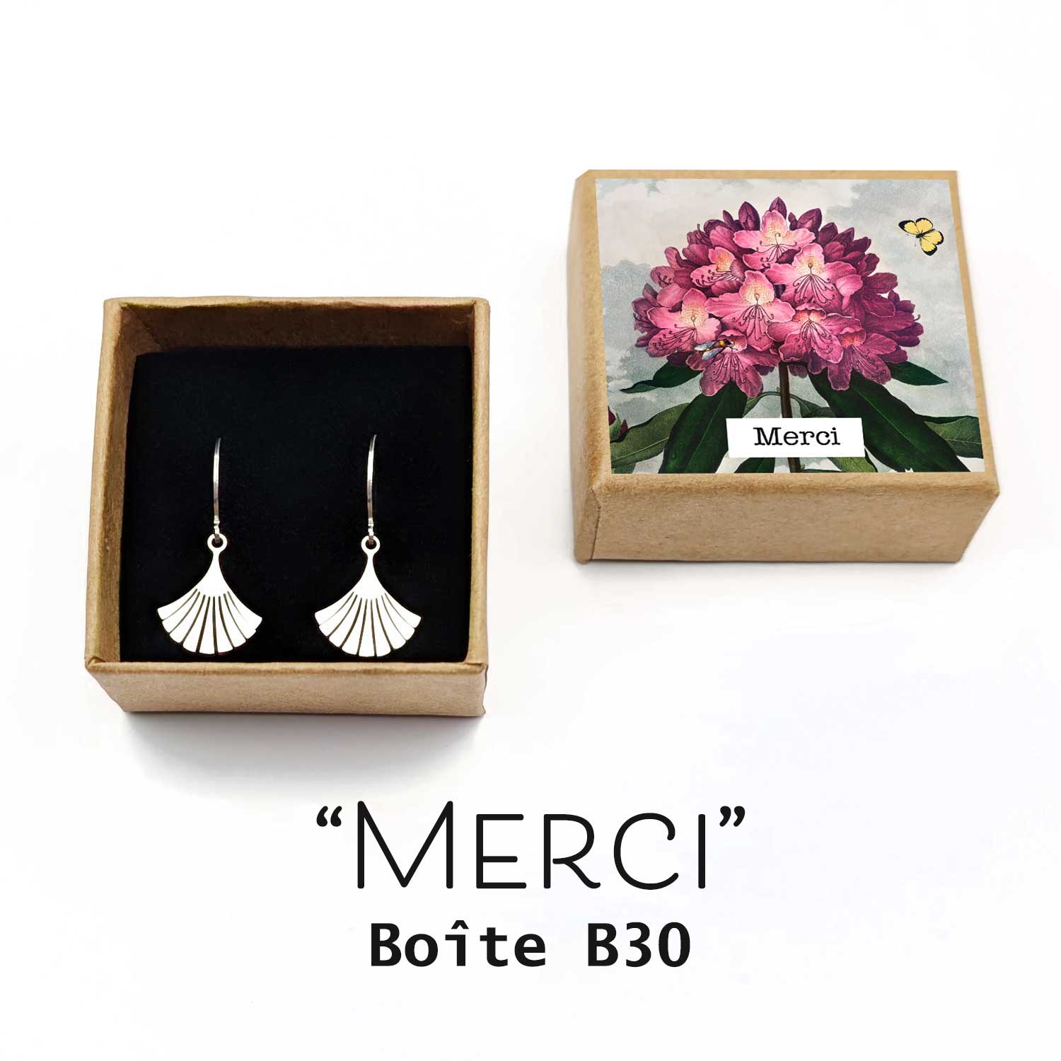 Ces dormeuses sont présentées dans une jolie boîte, prêtes à offrir. A vous de choisir la boîte avec le bon message. Vous pouvez consulter les boîtes ici: petites boîtes à message